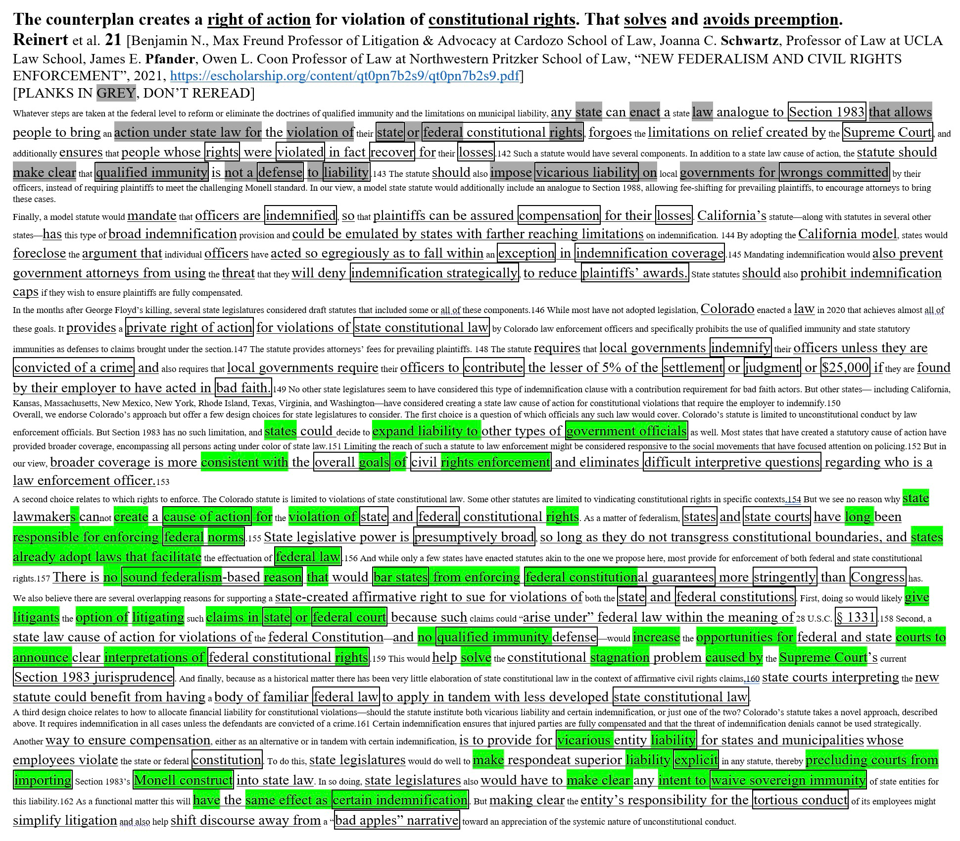 While most have not adopted legislation, Colorado enacted a law in 2020 that achieves almost all of these goals. It provides a private right of action for violations of state constitutional law by Colorado law enforcement officers and specifically prohibits the use of qualified immunity and state statutory immunities as defenses to claims brought under the section.147