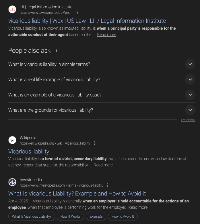 - So: it's when the employer is legally responsible for the employee. In this case, we're suing the federal government for illegal stuff its employees do.