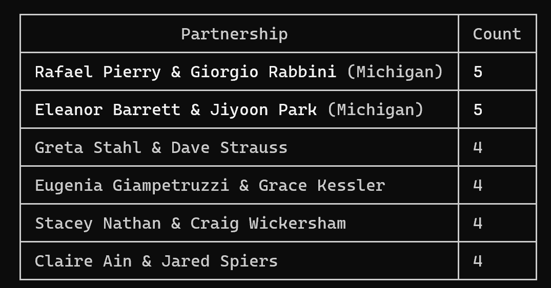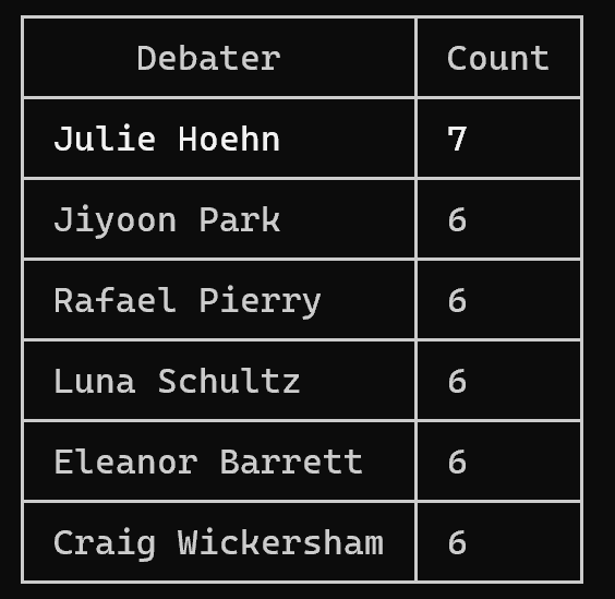 To the debaters that competed with the most partners: