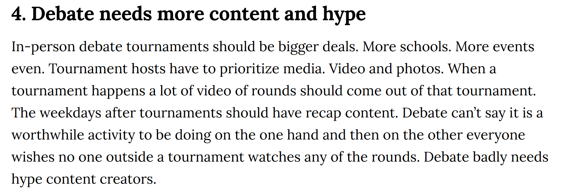 I felt strongly I needed to be an active participant to write about college debate. For this year that meant showing up in-person to the thing I found valuable - in person college tournaments that get people to use their actual brains.