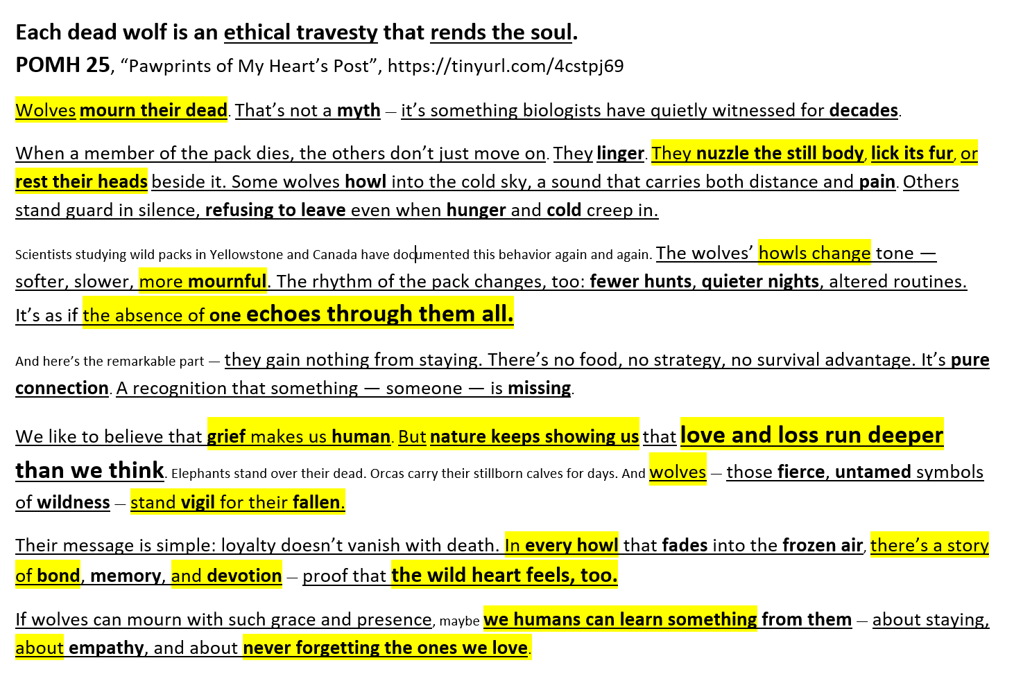 - every wolf death rends the soul