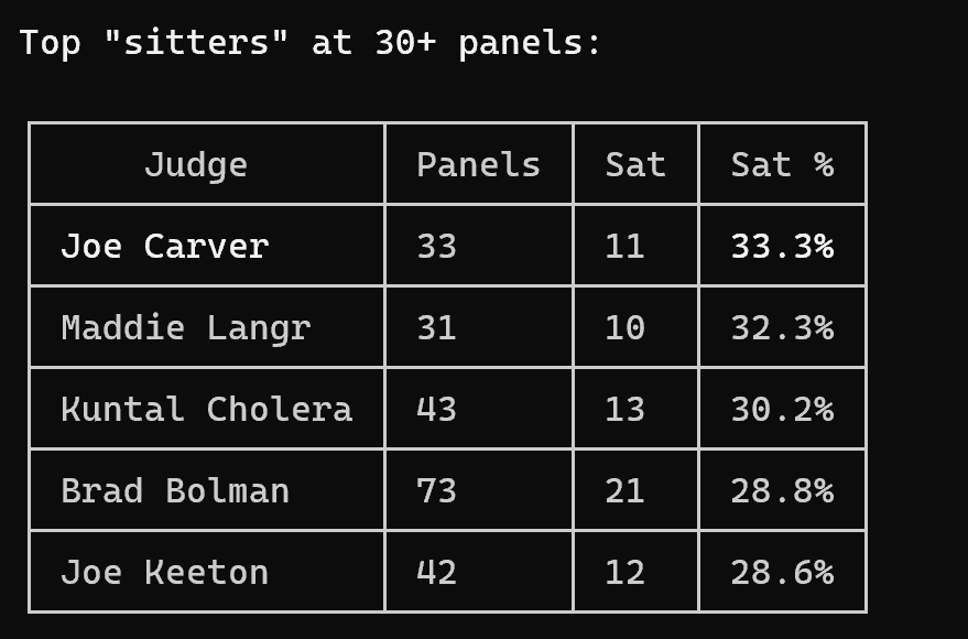 For the judges who sat the most: