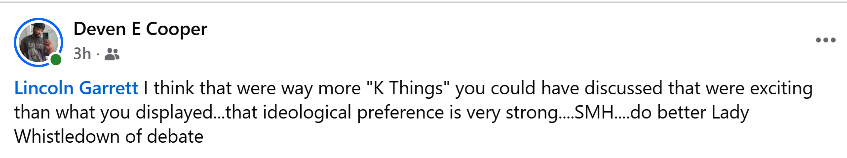 Jacob Wilkus. He records debates and thinks conditionality is real. A hero on many fronts that is above roasting.