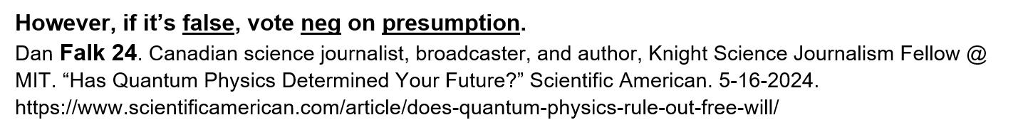 WRONG. Hey, robot that is writing the 2AC to this crap, what do you think presumption means?